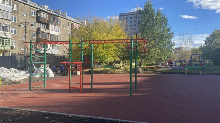 Так, во дворе на улице Тотмина, 9 работы на финишной прямой. Рабочие установили детский игровой комплекс, качели, новую песочницу и скамейки. Подрядная организация обновила асфальтовое покрытие, сделала бордюры, обустроила газоны. Сейчас идёт укладка травмобезопасного резинового покрытия.