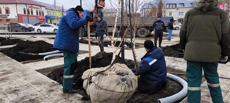 На Площади Мемориала Победы в рамках работы по благоустройству высадили деревья. 20 берёз теперь будут расти рядом с отреставрированным памятником Воину-освободителю.