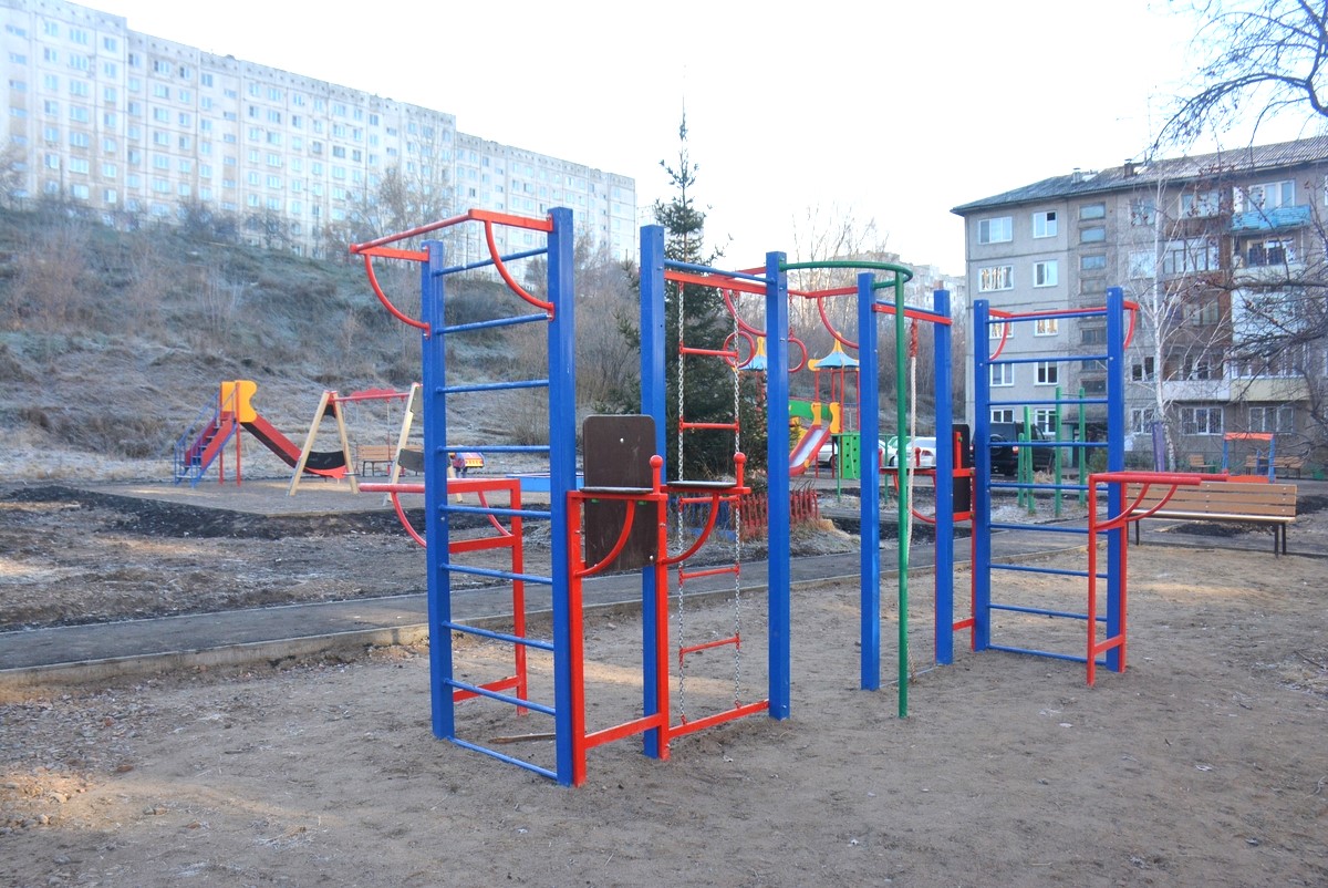 Новые детские площадки в этом году появились и на ул. Тобольская, 25а и 27а. Дома расположены так, что дворы образуют один большой участок. Там становили игровой и спортивный комплексы, качели, песочницу для малышей.