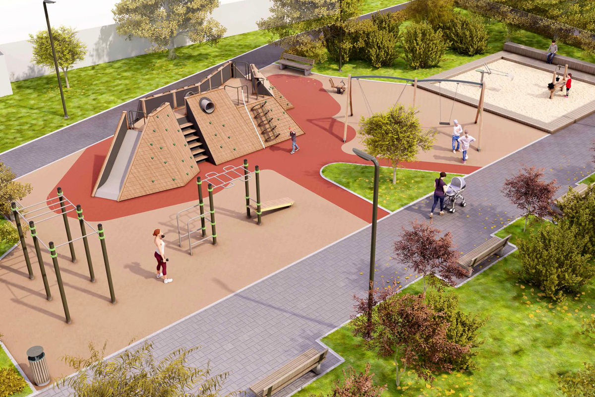 Территорию сквера планируют разделить на несколько тематических зон. Это обновлённая большая детская площадка с интерактивными игровыми комплексами, зона тихого отдыха, спортивная площадка и небольшая площадь с памятным камнем геодезистам.