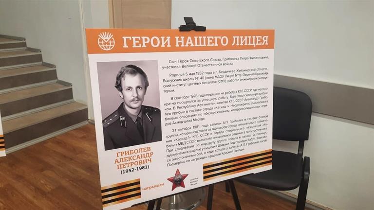 Александр Гриболев – воин-афганец. После школы он поступил в институт цветных металлов и золота, работал инженером-конструктором, а после перешёл на службу в КГБ. Погиб Александр, выполняя интернациональный долг. В августе 1981 года в составе отряда специального назначения «Каскад-3» он попал в засаду душманов. Красноярец посмертно награждён орденом Красной звезды.