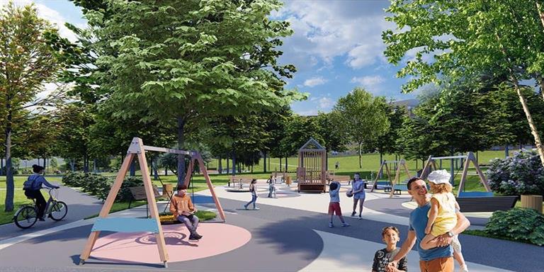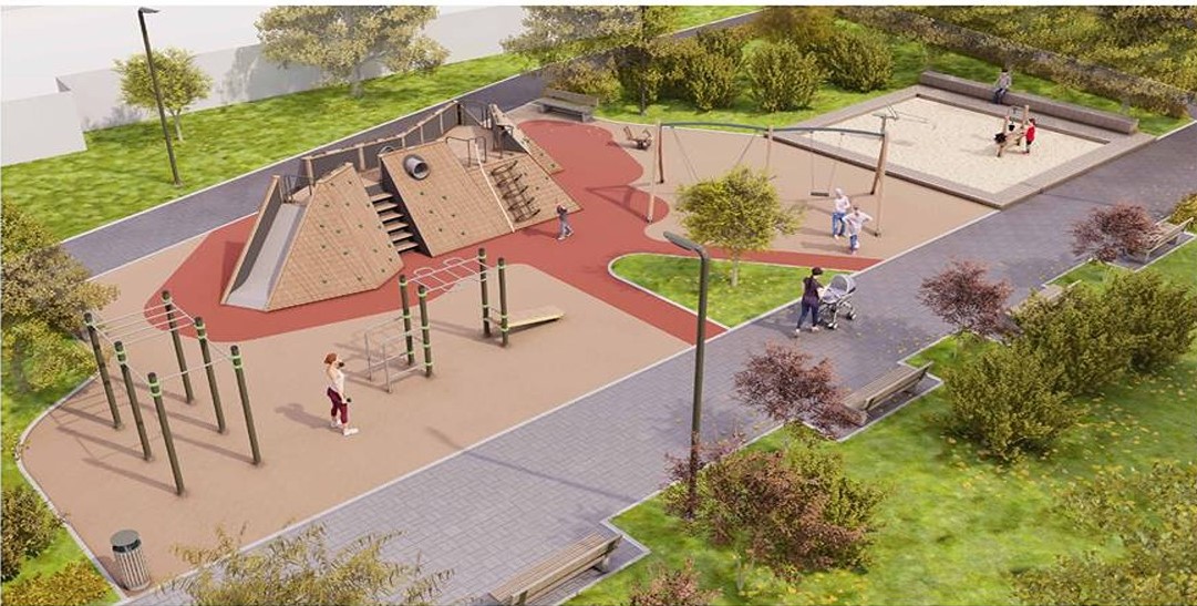 На Борисевича, 4-6 заросший пустырь нужно превратить в современный сквер с дорожками, детскими площадками для разных возрастов. Там появятся качели, перголы, скейт-парк, уличные тренажёры и велодорожки.