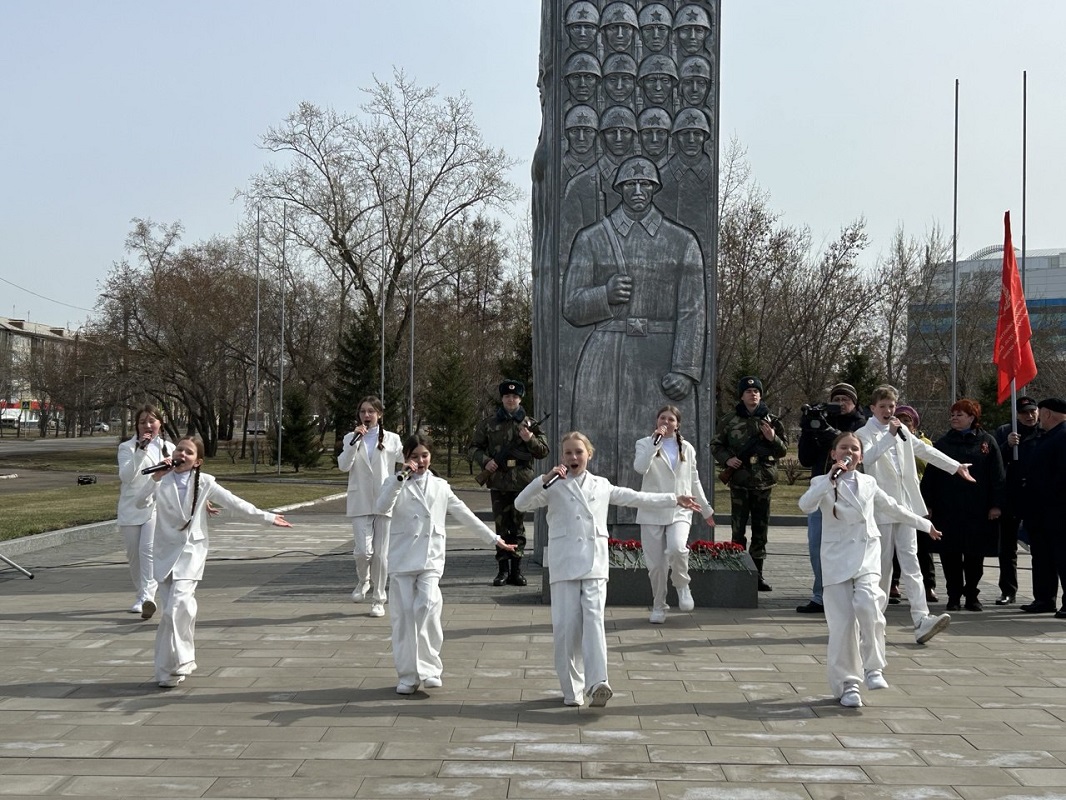 Мероприятие стартовало в парке Гвардейский возле стелы «Защитникам Родины». Здесь прошёл торжественный митинг, где выступили участники мероприятия, прозвучали гимн Российской Федерации и музыка в исполнении военного оркестра Красноярского соединения войск национальной гвардии РФ. У стелы выстроился почётный караул. На открытии автопробега присутствовали школьники и молодёжь.