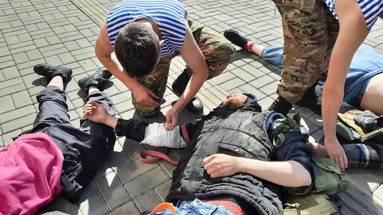 Ребята накладывали повязки и останавливали кровотечение, готовили пострадавших к эвакуации и транспортировали их.
