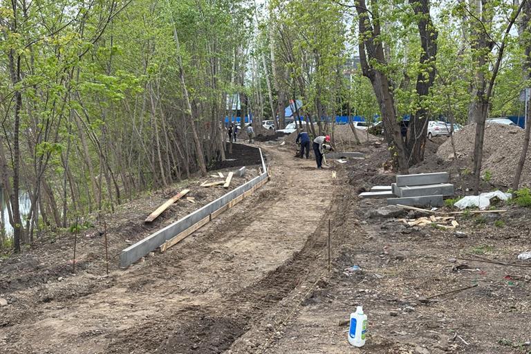 С опережением графика благоустраиваются озёра на Пашенном. Работы там начались в апреле. Подрядчик уже выполнил демонтажные работы наполовину, а, где это возможно, приступил к укладке брусчатки и бордюр. Уже в этом году там сделают пешеходные маршруты, детскую площадку, территорию для выгула собак, беседки и смотровые балконы.
