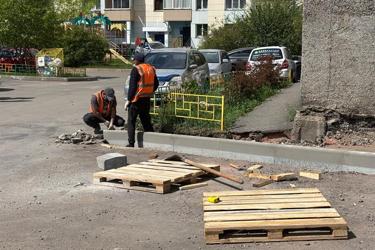 Здесь полностью обновляют пространство: убирают старый асфальт, меняют бордюры. В завершение благоустройства установят детскую площадку, песочницу и качели, поставят удобные скамейки и урны. Работы проводятся в рамках программы «Формирование комфортной городской среды» нацпроекта «Инфраструктура для жизни».
