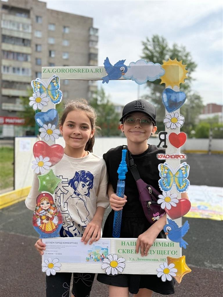 Помимо праздничной программы во дворе организовали яркую летнюю тематическую фотозону, в которой можно было сделать красивые снимки.