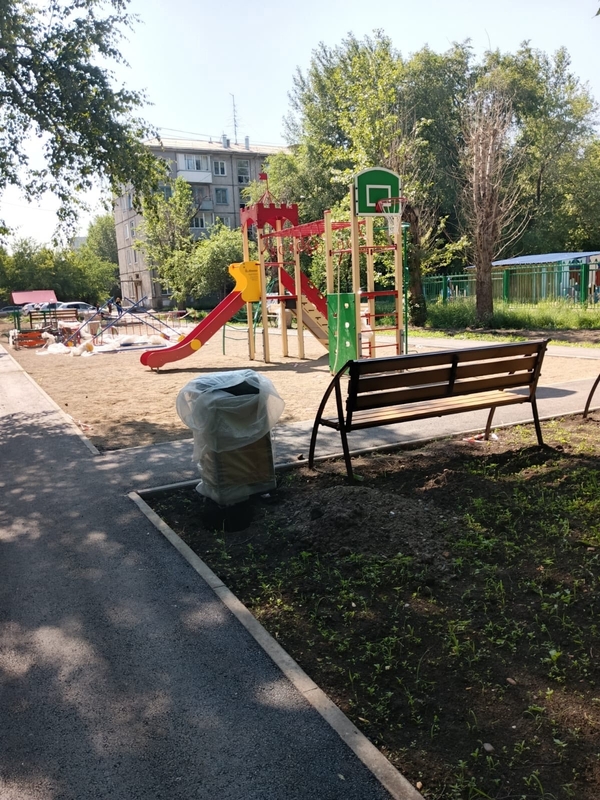 Во дворе на улице Спортивная, 190 уже выполнено 95% запланированных работ. Рабочие обновили асфальт проезда, заменили бордюры. Затем восстановили газон, поставили лавочки и урны. Для детей появилась игровая зона с качелями, горками, песочницами и машинками на пружинах, для ребят постарше – спортивные тренажёры.