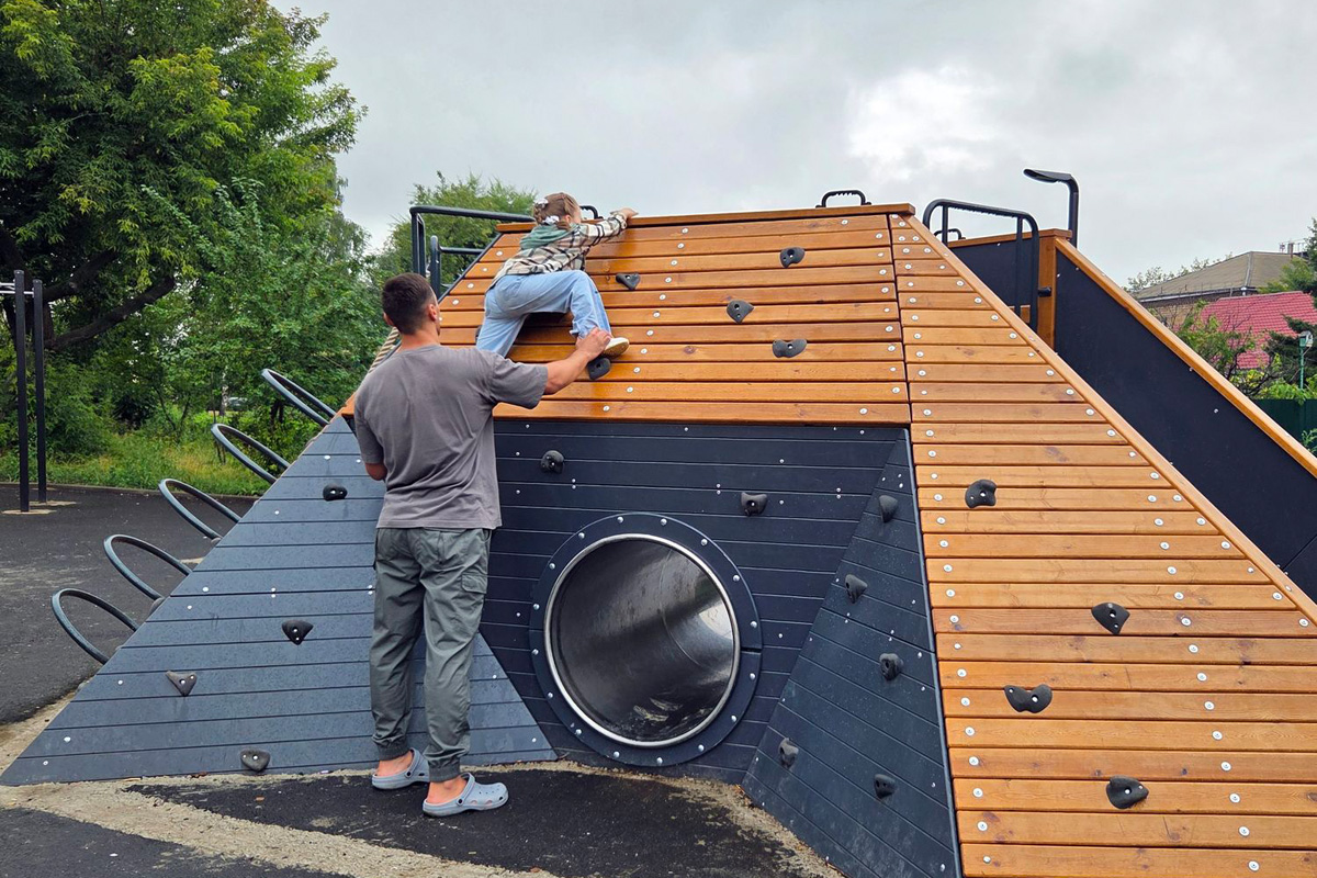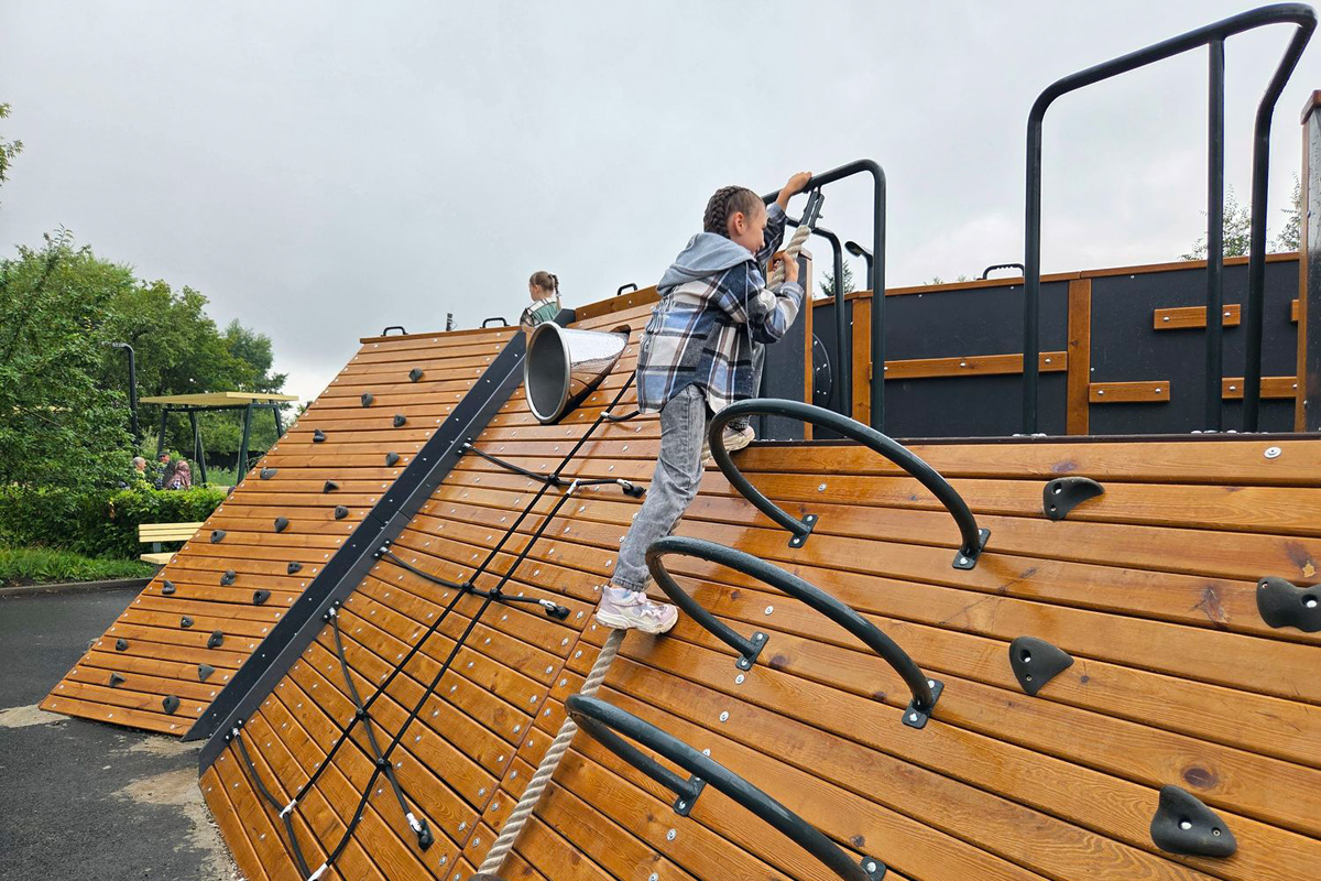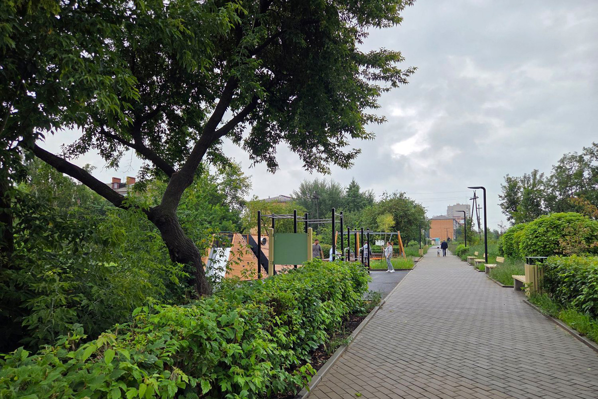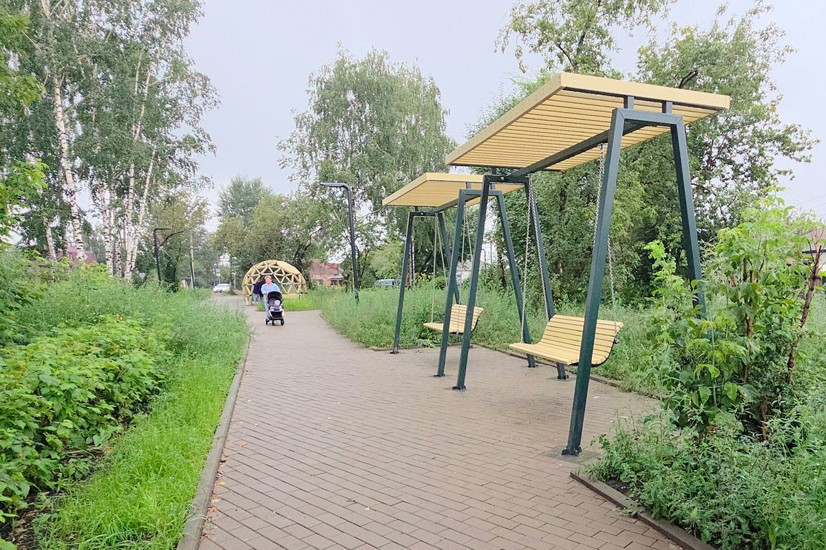 Территорию обновлённого сквера разделили на несколько тематических зон. Это детская площадка с интерактивными игровыми комплексами, зона тихого отдыха и спортивная площадка. Также в сквере уложили брусчатку, обновили систему освещения, установили качели с навесами, урны и скамейки. Территорию дополнительно озеленили – высадили яблони, ивы и спирею.