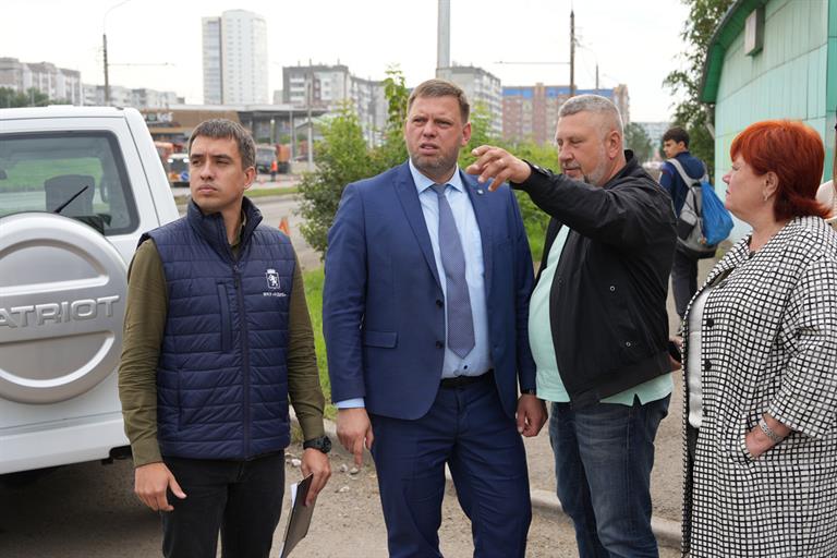 Первый заместитель главы города Александр Мацак, руководитель администрации Советского района Елена Ланина и представители службы заказчика проверили, как идут работы на двух важных объектах в мкрн Северный – улице Шумяцкого и проспекте Комсомольском.