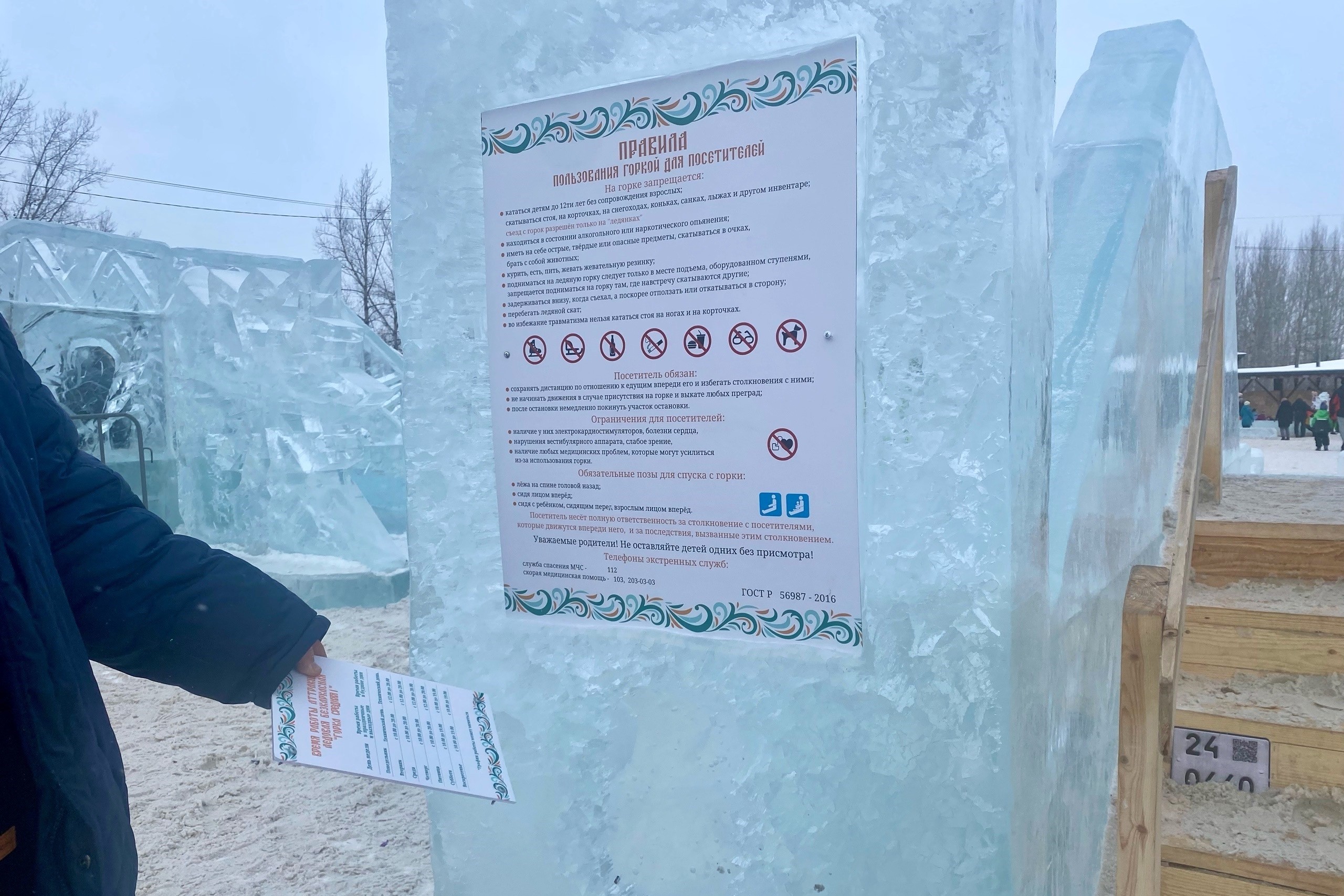 В этом году для зимних забав подготовили пять горок: три большие, высотой более трёх метров и две средних размеров. Для самых маленьких посетителей организаторы предусмотрели отдельную локацию с небольшими ледовыми спусками, которые будут включены в угловые ледовые композиции, а также аттракцион Чашу.