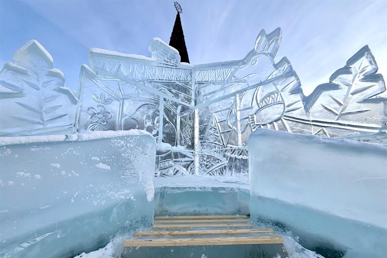 В этот же день заработает площадка с ледовыми композициями, фотолокациями и ледяными горками. Горожане увидят изящные скульптуры, которые резчики выполнили в русском стиле с элементами народного орнамента.