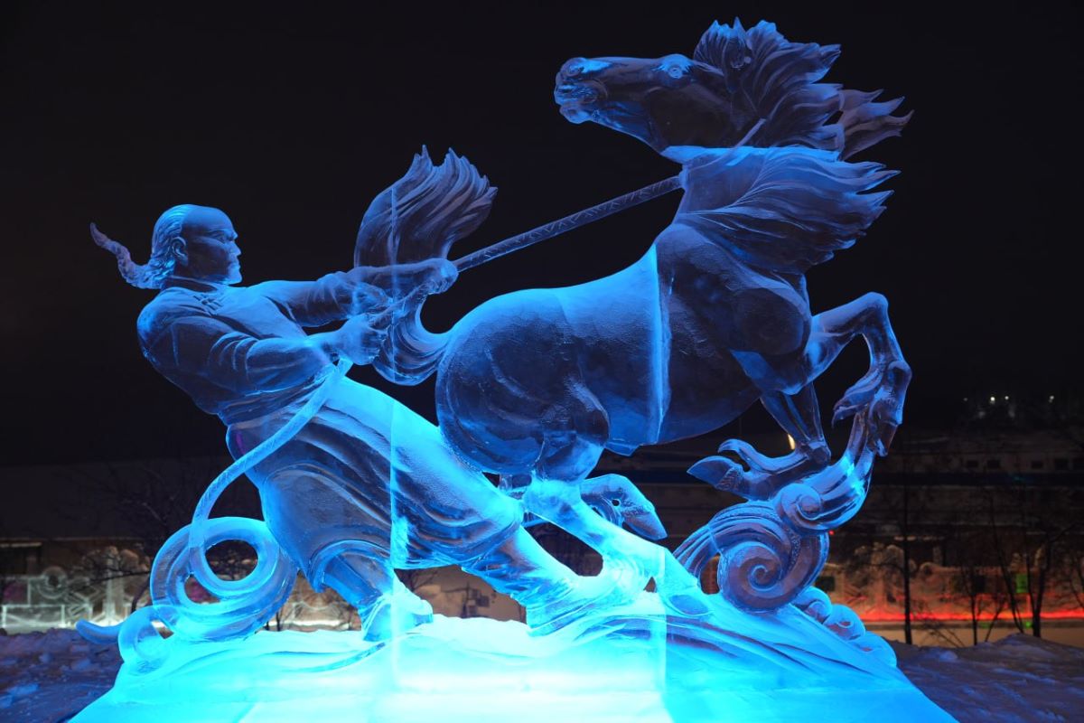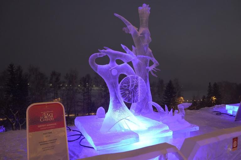 «Нашей задачей было показать шамана в абстракции, уйти от конкретного образа к сути ритуала. Каждый элемент здесь – символ. Это не просто фигура – это стихия в движении, застывший миг обряда, где шаман шепчет духам, а его форма готова взлететь, как птица. Фестиваль «Волшебный лёд Сибири» - та редкая площадка, где лёд оживает, позволяя рассказать такие истории», ‒ поделился Александр Баранмаа.