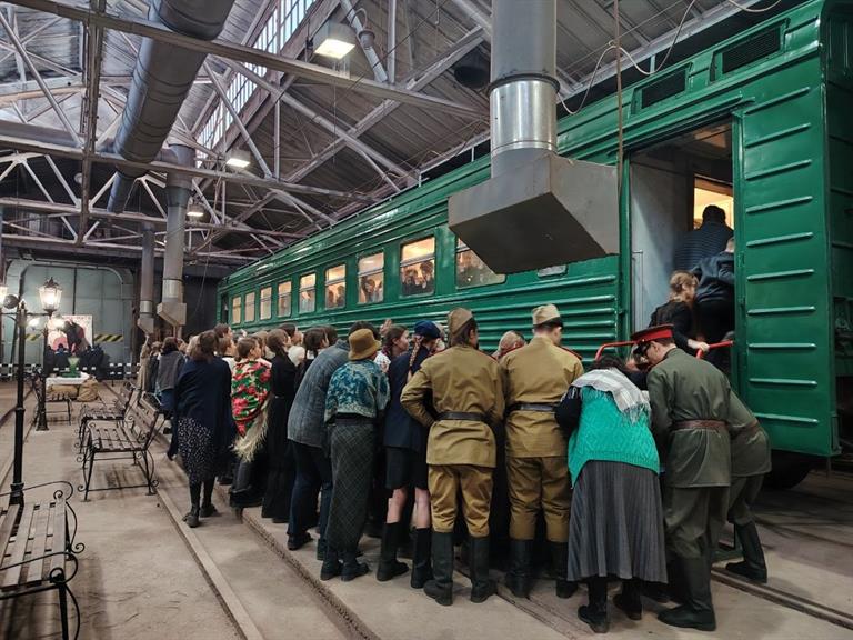 В этом году местом проведения реконструкции стал Красноярский электровагоноремонтный завод. Историческое здание XIX века превратилось в символический вокзал Ленинграда, откуда отправлялись эшелоны с эвакуированными детьми и санитарные поезда.