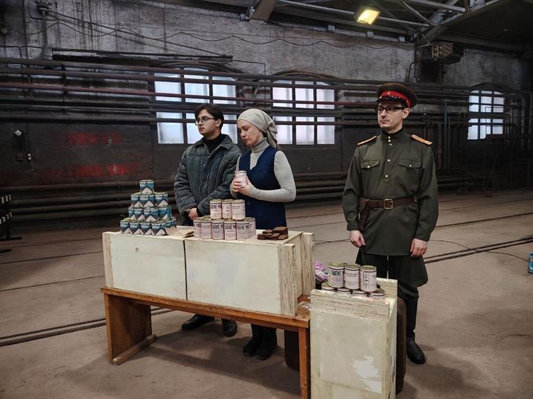 В масштабной постановке приняли участие 114 непрофессиональных актёров – от семилетних детей до взрослых. Они наглядно продемонстрировали ужасы войны: голод, холод и нечеловеческие условия жизни в блокадном городе.