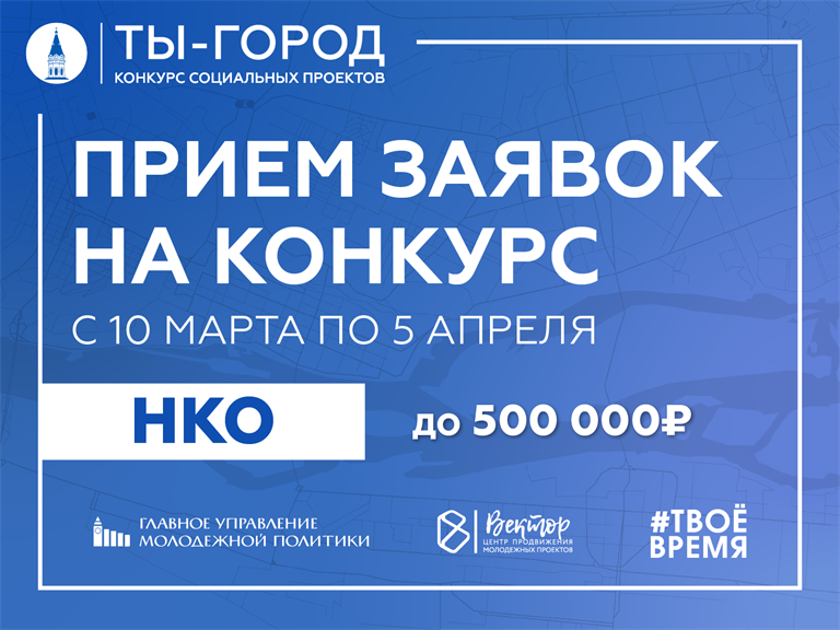До 5 апреля социально ориентированные некоммерческие организации могут подать заявку на участие в конкурсе социальных проектов в сфере молодёжной политики «Ты – город». На реализацию идей НКО получат до 500 тысяч рублей.