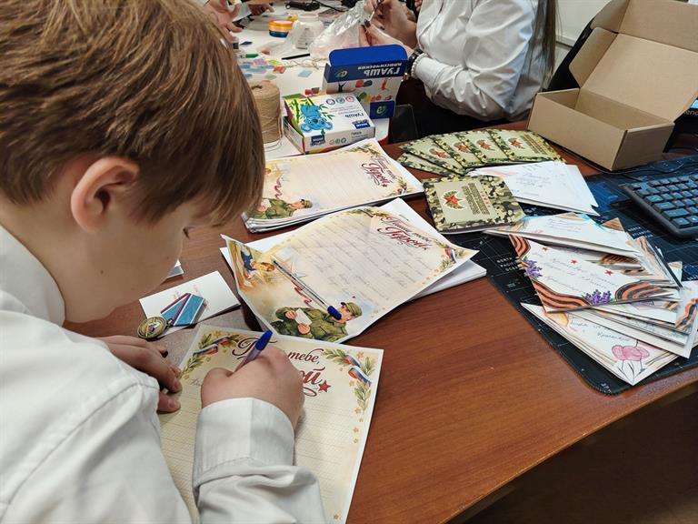 Уже готова к отправке очередная партия писем. В них дети рассказывают о приходе весны, о предстоящих каникулах и экзаменах. И, конечно, обязательно благодарят бойцов за защиту, мужество и отвагу, желают крепкого здоровья, удачи и скорейшего возвращения домой.