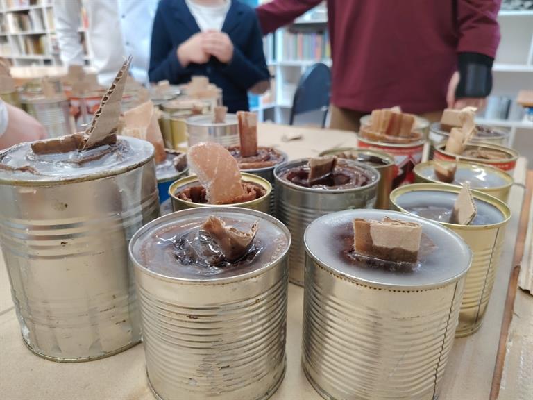 Сегодня ученики сосредоточенно трудились в школьной библиотеке. Старшеклассники скручивали картон в «улитки», помещали их в жестяные банки и заливали горячим парафином. Так рождаются жизненно необходимые окопные свечи, способные осветить блиндаж, согреть руки бойцов.