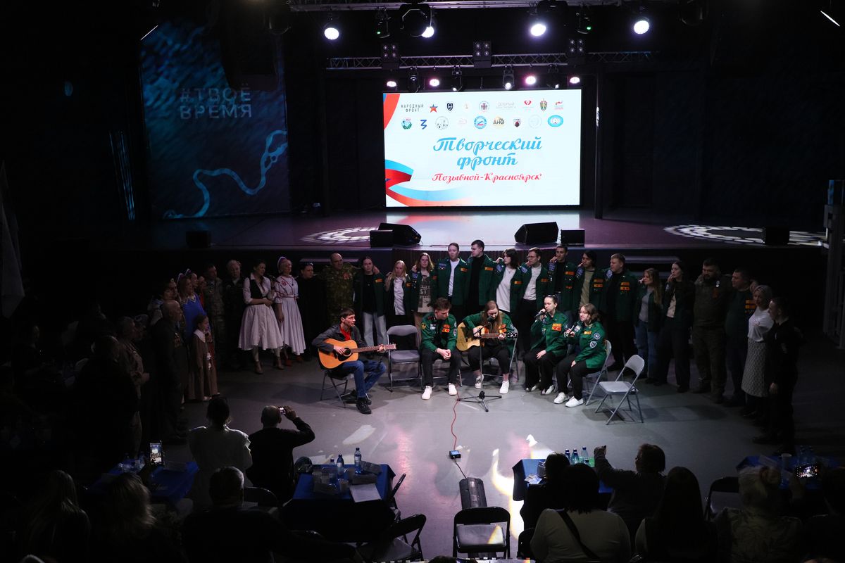 13 марта в Красноярске состоялось открытие нового городского общественного проекта «Творческий фронт. Позывной – Красноярск». На сцене с историями-монологами, песнями и стихами выступили ветераны боевых действий разных лет, их родные, волонтёры, студенческие отряды. Сопровождали творческий вечер выступления детского театрального коллектива.