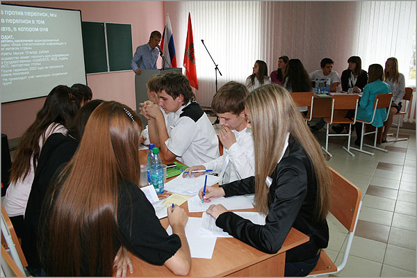 Открыла мероприятие «независимый эксперт» - руководитель Территориального органа Федеральной службы государственной статистики по Красноярскому краю Т.А. Давыденко. Она не стала убеждать учеников в важности проведения широкомасштабного мероприятия. Безоговорочным аргументом стали данные, полученные в ходе школьной переписи, которая проходила в гимназии №5 накануне дебатов. «Также и перепись населения является пока единственной возможностью, чтобы получить полную картину о жителях нашей страны», - подчеркнула руководитель Красноярскстата.